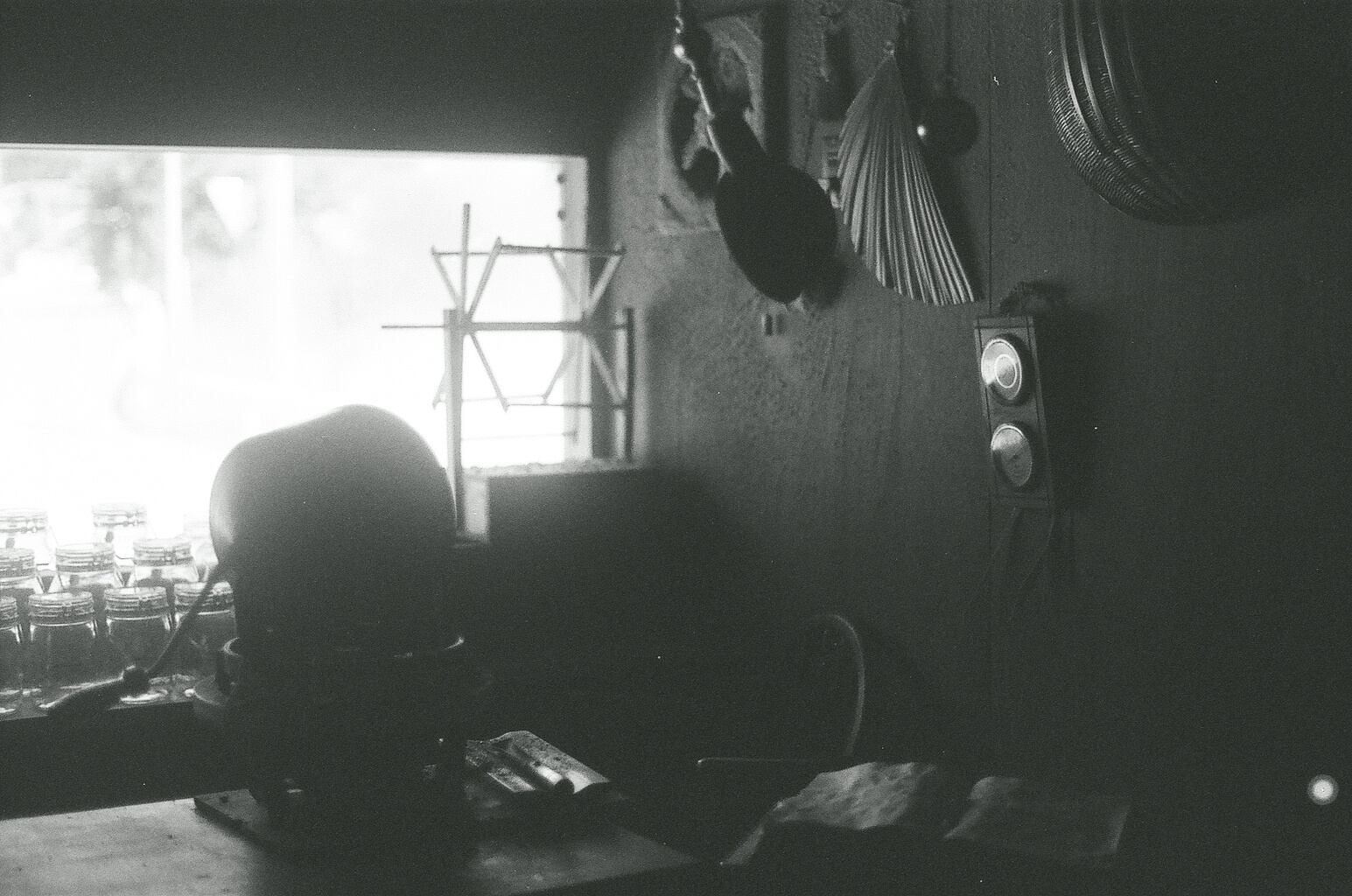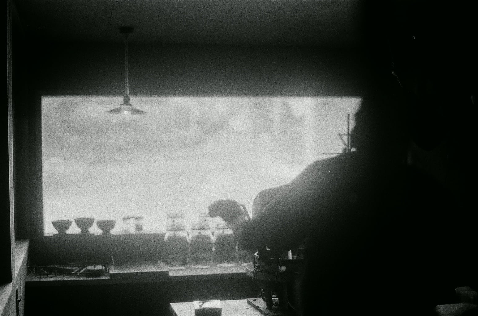 手廻しの焙煎機で時間をかけ、じっくり深く灼いている雨待ちの珈琲マメは